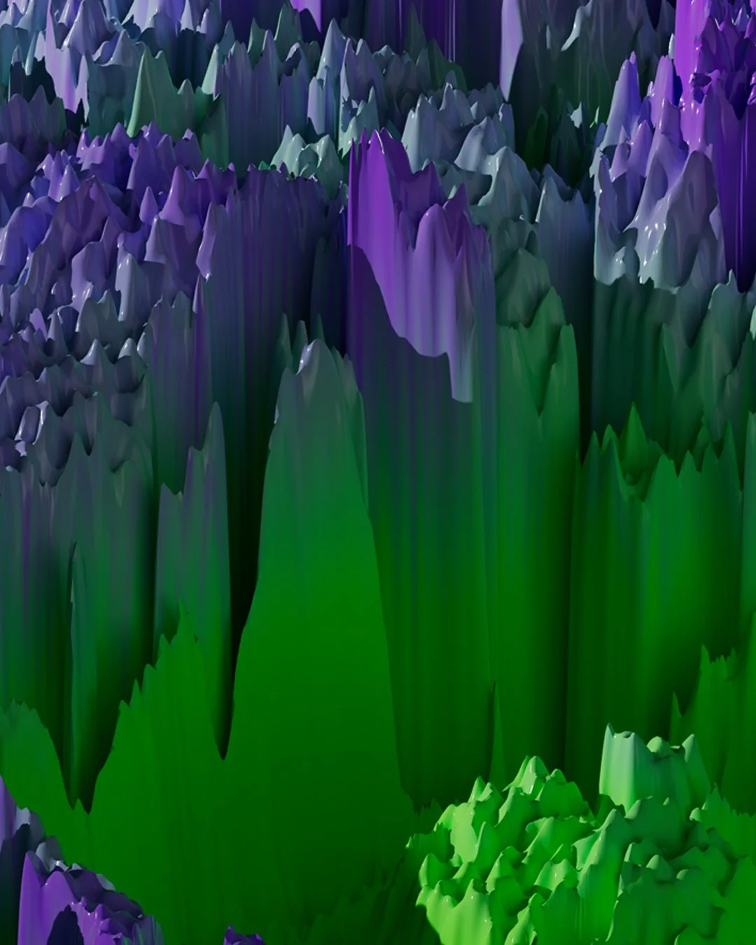 The three-video installation features each ‘’landscape’’ influenced by gathered field recordings of one of the sound categories from soundscape ecology. This field divides environmental sounds into three categories: “biophony,” “geophony,” and “anthrophony.” Biophony refers to sounds created by organisms, geophony encompasses non-biological sounds, and anthrophony includes sounds caused by humans. Through machine learning, these environmental sounds individually erode the generative landscapes, visually representing the differences in their impact on space, ecology, and the human body.
